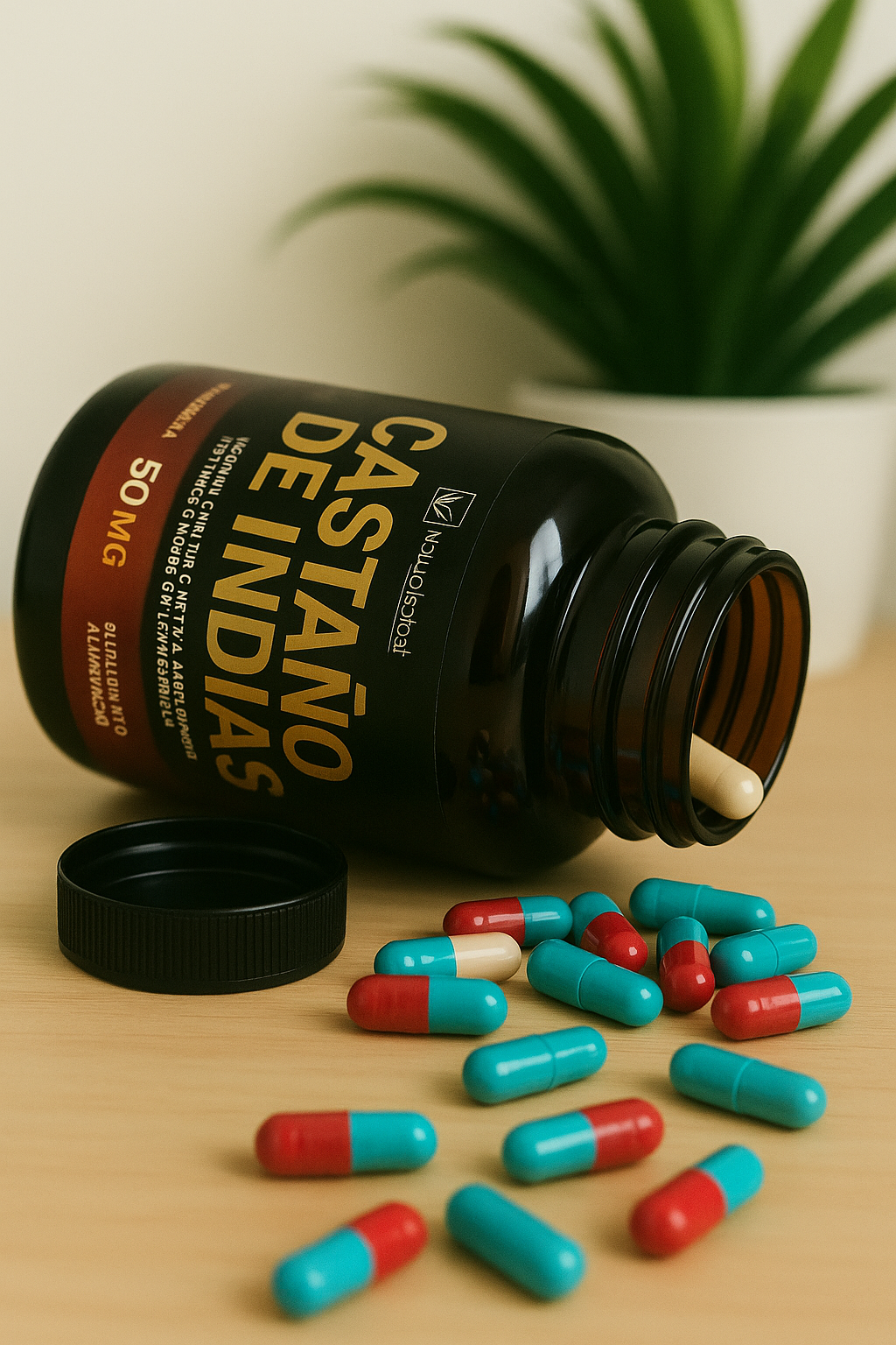 Es un suplemento alimenticio en capsulas formulado con vitamina C, ortiga, ajo, romero, castaño de indias, espino, zarzaparrilla, y cúrcuma pulverizada. Su combinación natural esta diseñada para fortalecer la circulación, aliviar la pesadez de piernas y promover un bienestar integral.